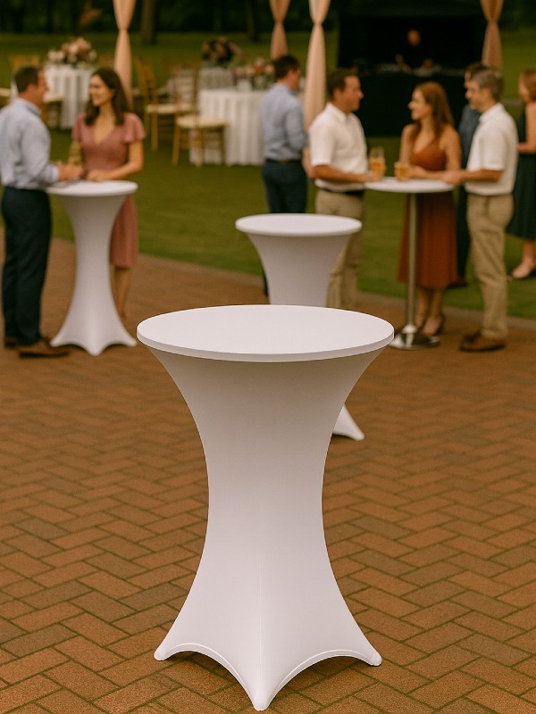Premium Cocktail Tables – Want something with a bit more class? Our premium cocktail tables instantly lift the mood of any wedding, dinner, or company event. Pair them with matching barstools or neat linen covers, and you’ve got that effortless “wow” look.