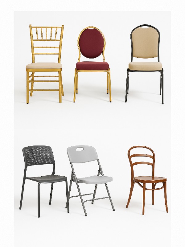 - Chiavari Chair – lightweight, timeless, and perfect for those wanting a more refined look.