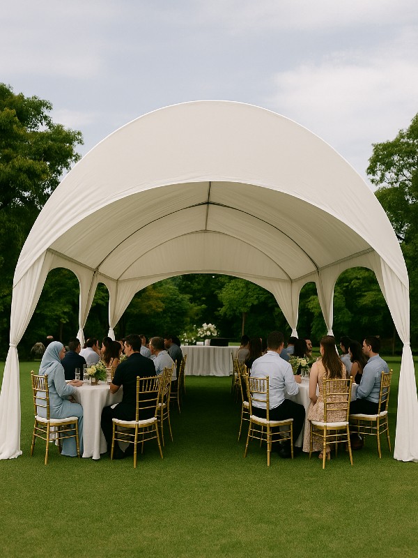 Our half-moon canopy setups are a crowd favourite. With their smooth, curved design, they bring a bit of class to everything from weddings and open houses to corporate launches and family gatherings. It’s not just about shade — it’s about setting the right mood. And trust me, nothing looks quite like a well-set half-moon tent under the Malaysian sky.