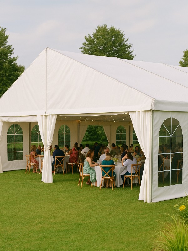 If you’ve been Googling where to rent canopy for party setups, here’s a quick tip — it’s not just about the tent’s size, it’s about how your space feels. A 20×20 canopy suits most mid-sized events nicely — enough room for guests to move, eat, and mingle. Bigger occasions like weddings or launches? That’s where our big party tent rentals come in, giving you space for décor, lights, and a buffet without feeling cramped.